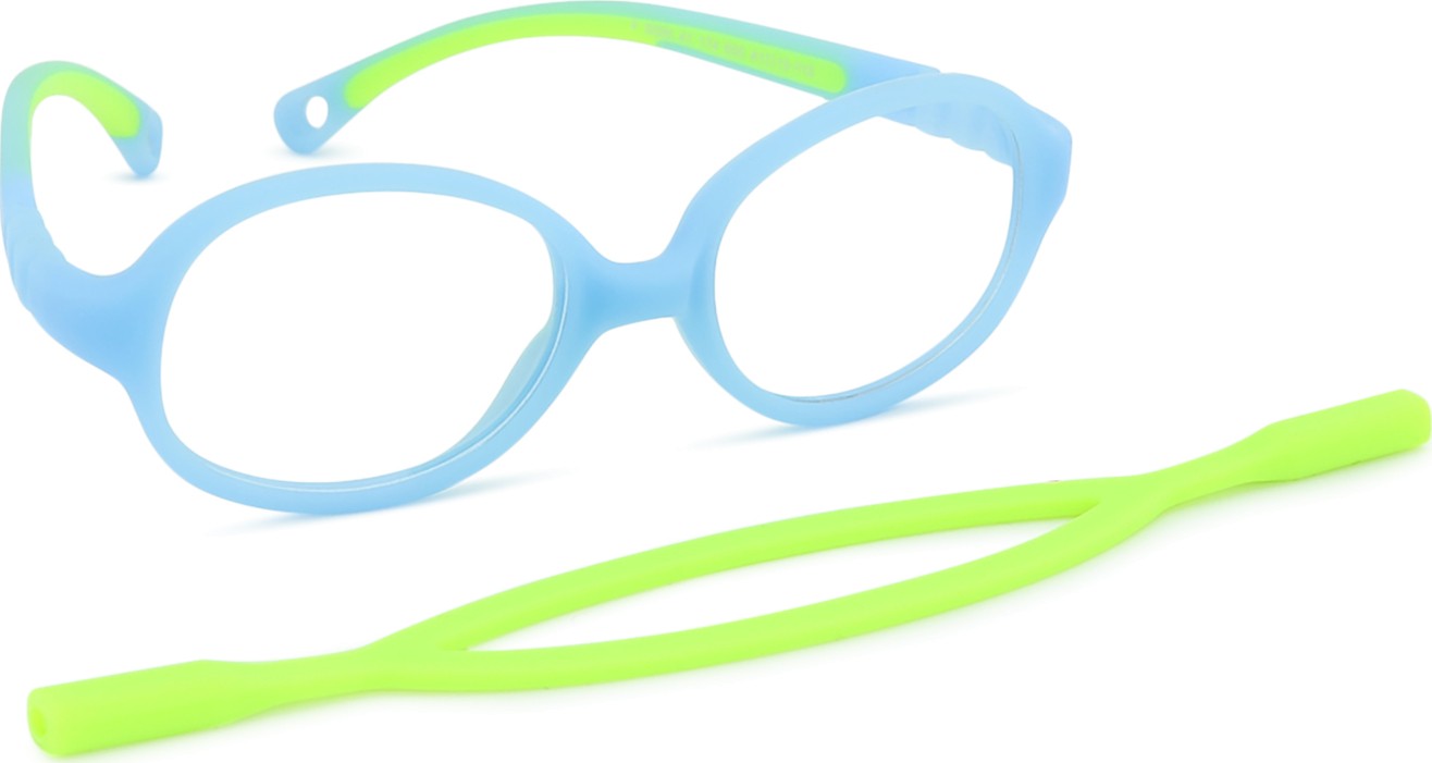Active Baby -mallissa on kuminauha, joka vähentää silmälasien katoamisriskiä ja parantaa niiden kiinnitystä päähän erilaisten lasten aktiviteettien aikana.