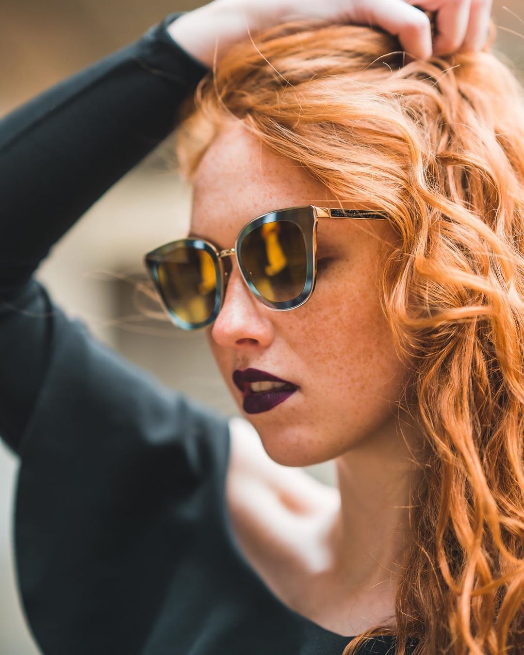 Kehyksen punainen väri sopii täydellisesti lämpimään ihonsävyyn ja mustiin,