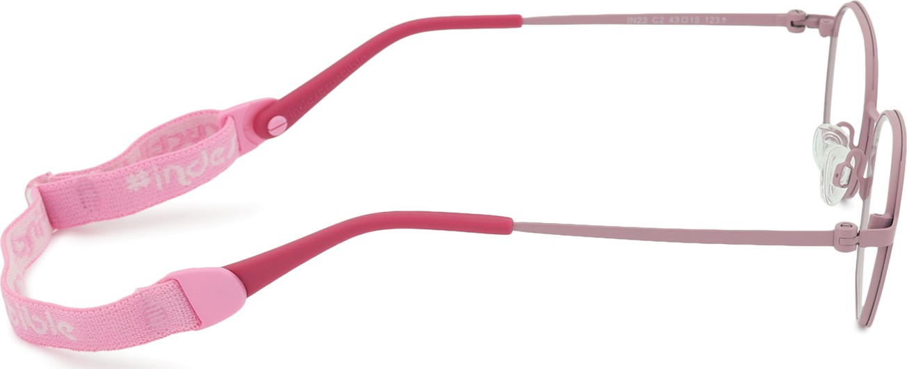 Indii Kids IN -mallissa on säädettävä tekstiilinauha, joka auttaa poistamaan silmälasien katoamisriskin ja varmistaa paremman kiinnityksen päähän erilaisten lasten aktiviteettien aikana.