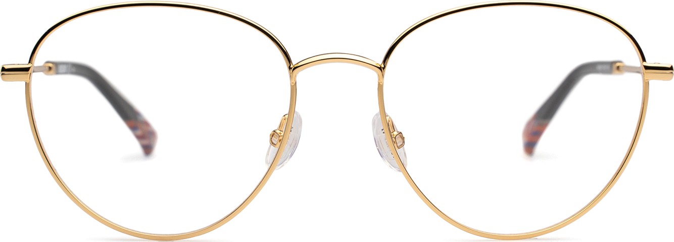 - Kehyksen kultainen väri sopii täydellisesti lämpimään ihonsävyyn ja tummanruskeisiin hiuksiin.