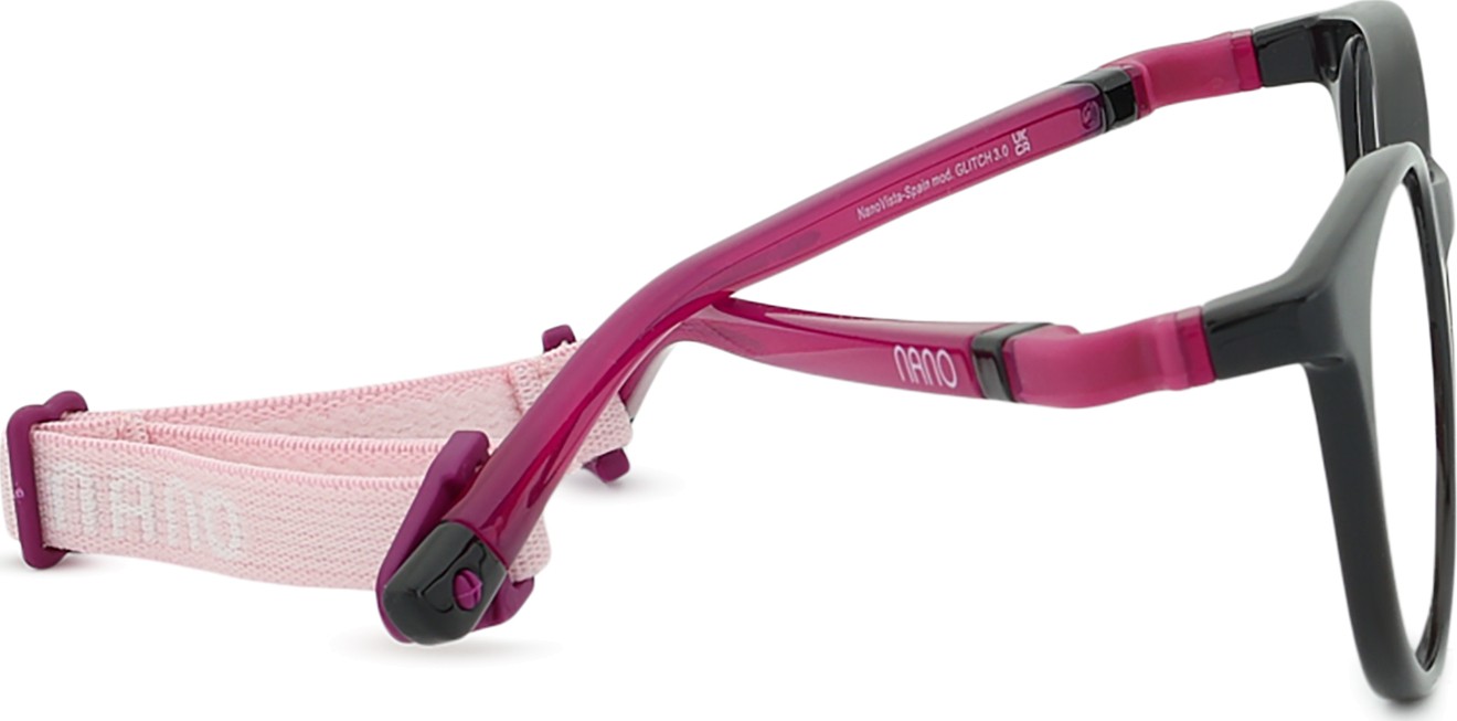 Glitch 3.0 -mallissa on kaksi säädettävää tekstiilihihnaa, jotka vähentävät silmälasien katoamisriskiä ja parantavat niiden kiinnitystä päähän erilaisten lasten aktiviteettien aikana.
