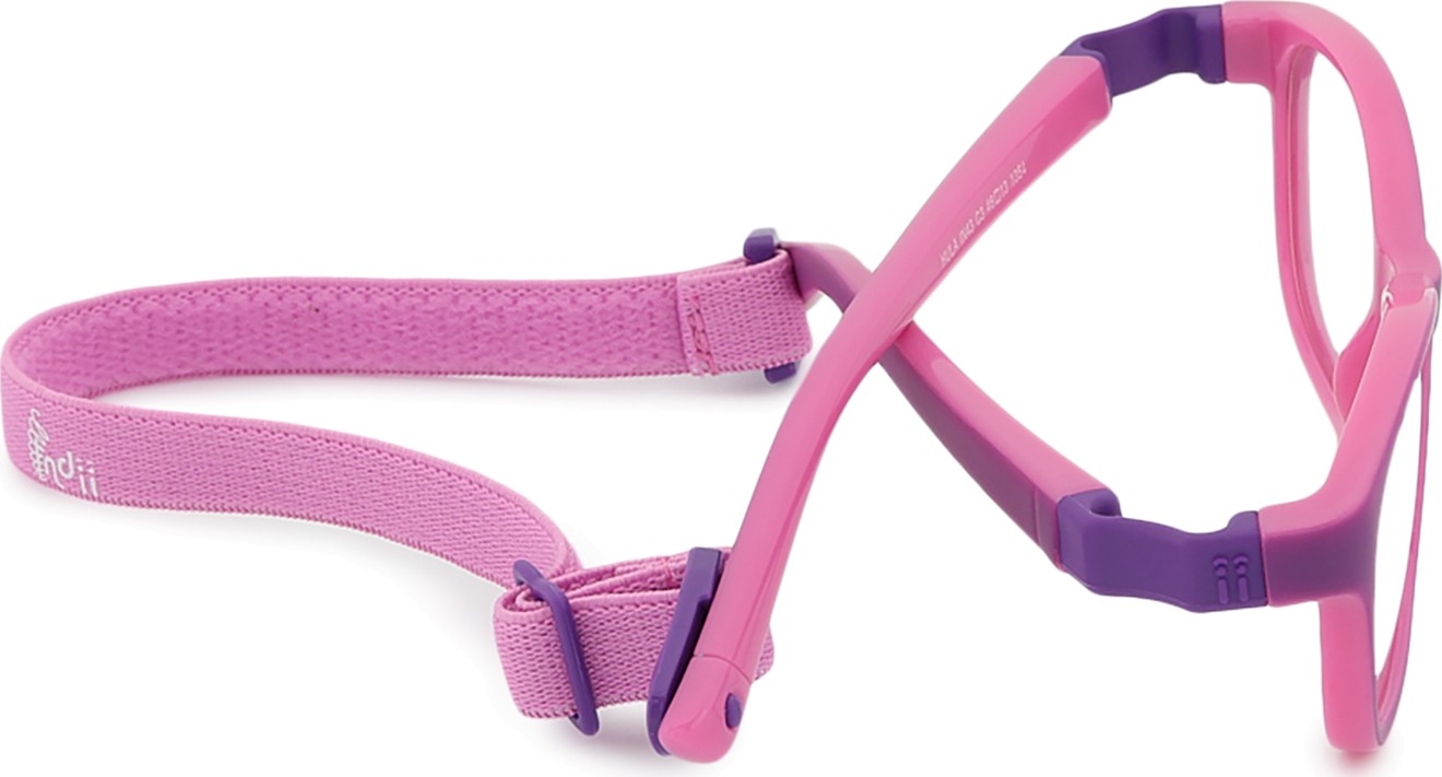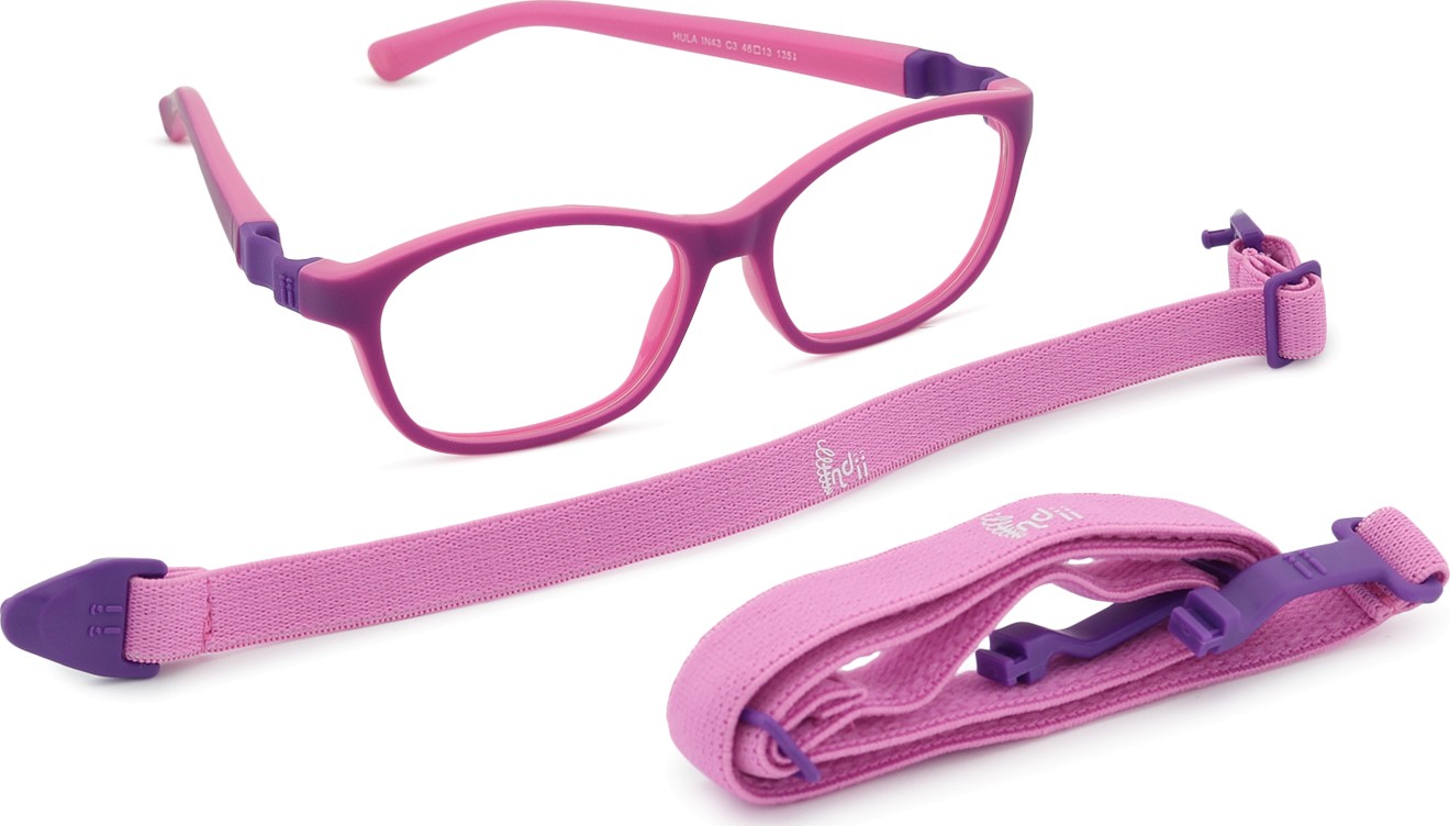 Indii Kids IN -mallissa on kaksi säädettävää tekstiilihihnaa, jotka vähentävät silmälasien katoamisriskiä ja parantavat niiden kiinnitystä päähän erilaisten lasten aktiviteettien aikana.