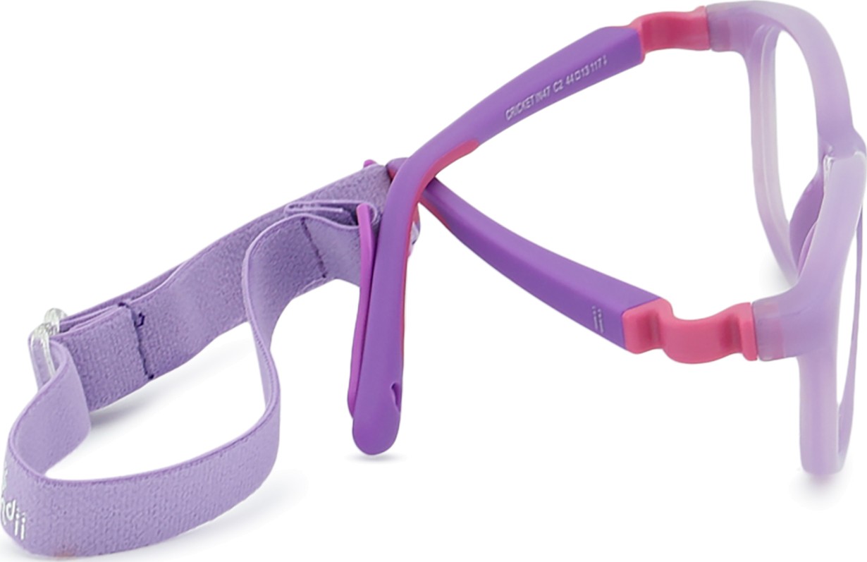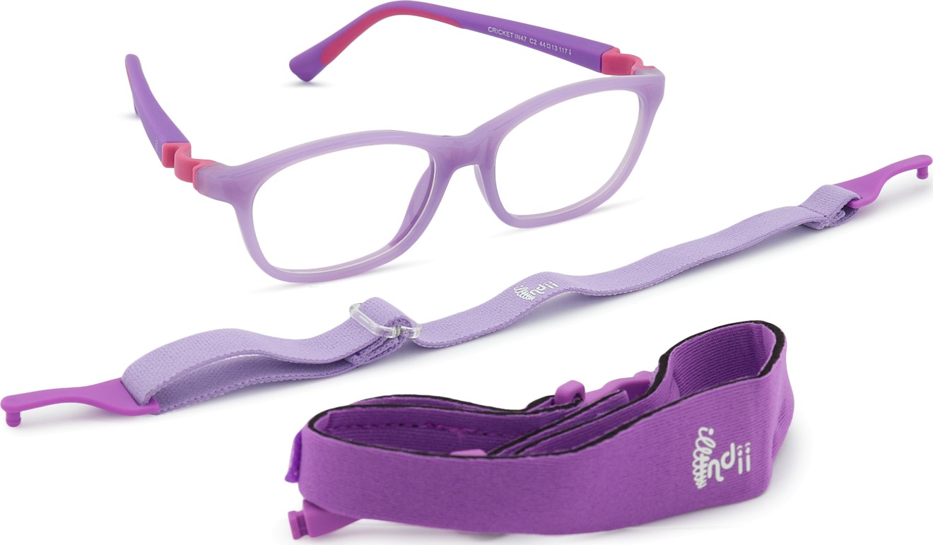 Indii Kids IN -mallissa on kaksi säädettävää tekstiilihihnaa, jotka vähentävät silmälasien katoamisriskiä ja parantavat niiden kiinnitystä päähän erilaisten lasten aktiviteettien aikana.