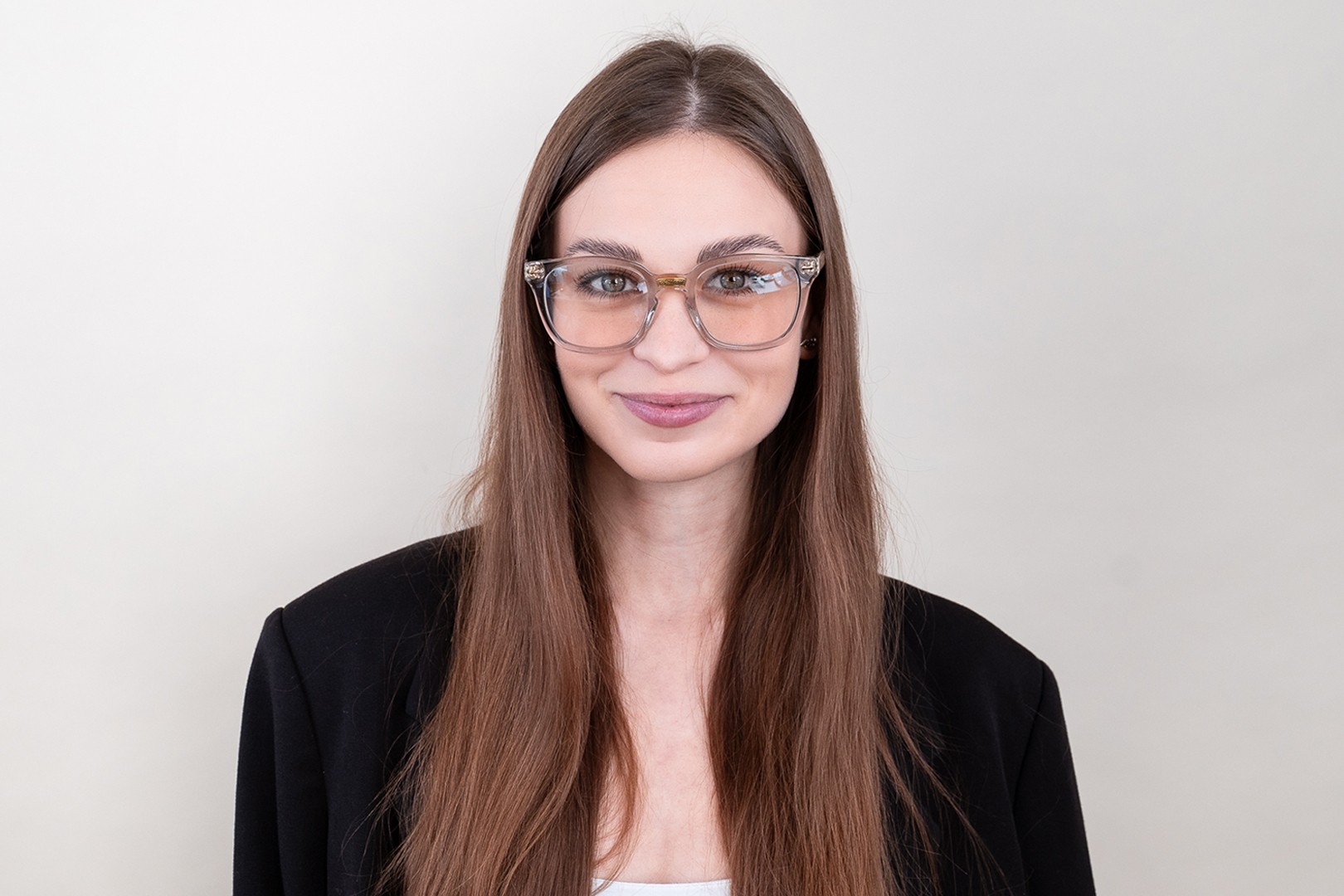 - Kehyksen harmaa väri sopii täydellisesti viileään ihonsävyyn ja punaisiin, harmaisiin, valkoisiin tai tummanvaaleisiin hiuksiin.