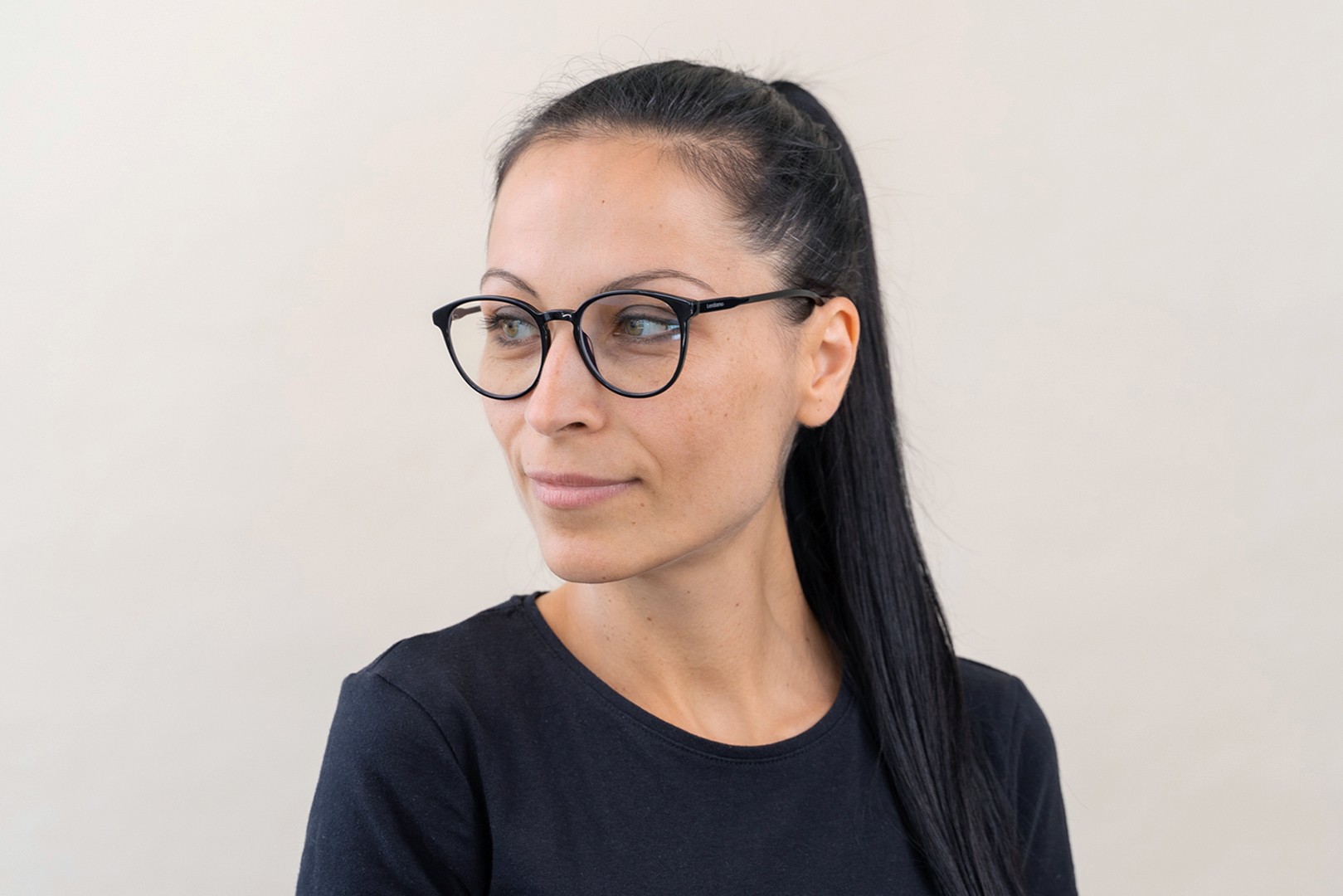 - Kehyksen musta väri sopii täydellisesti viileään ihonsävyyn ja vaaleanvaaleisiin, vaaleanruskeisiin tai mustiin hiuksiin.