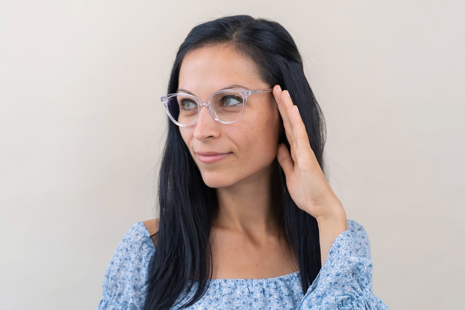 - Läpinäkyvä kehys sopii täydellisesti sekä viileisiin että lämpimiin ihonsävyihin ja kaikkiin hiusväreihin.