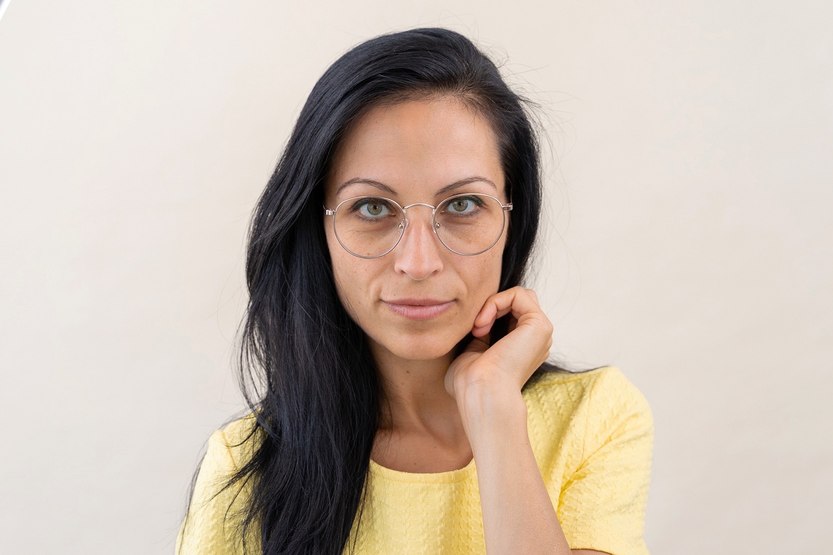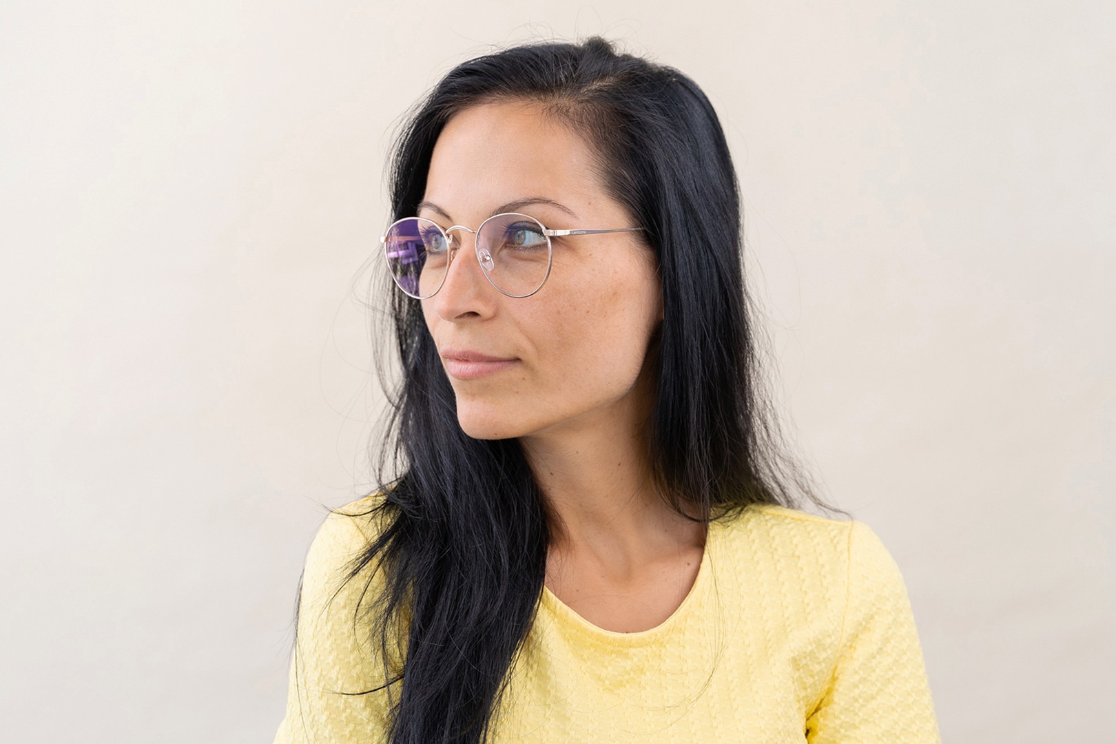 - Kehyksen kullanväri sopii täydellisesti lämpimään ihonsävyyn ja tummanruskeisiin hiuksiin.