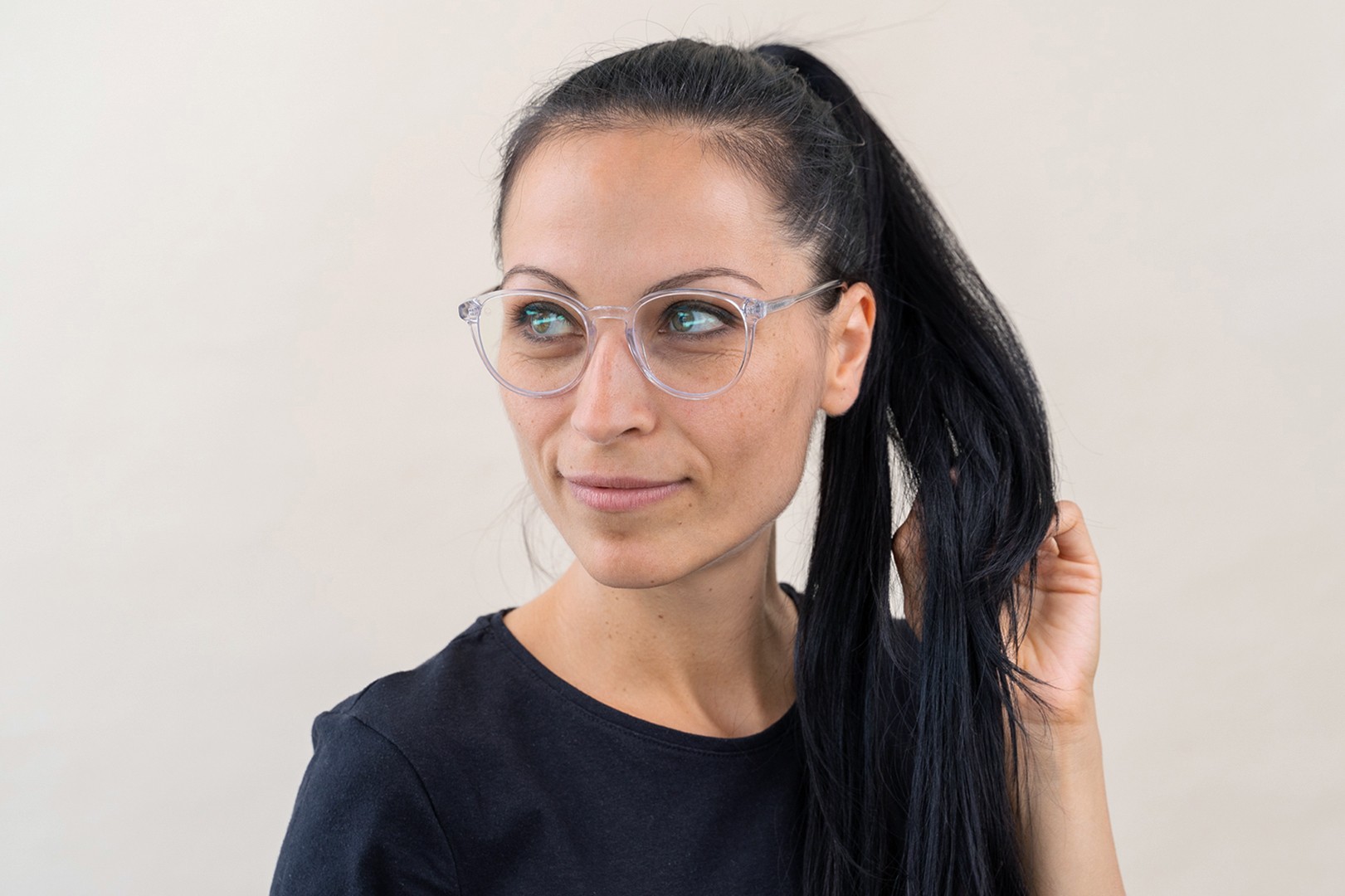 • Läpinäkyvä kehys sopii täydellisesti sekä viileisiin että lämpimiin ihonsävyihin ja kaikkiin hiusväreihin.