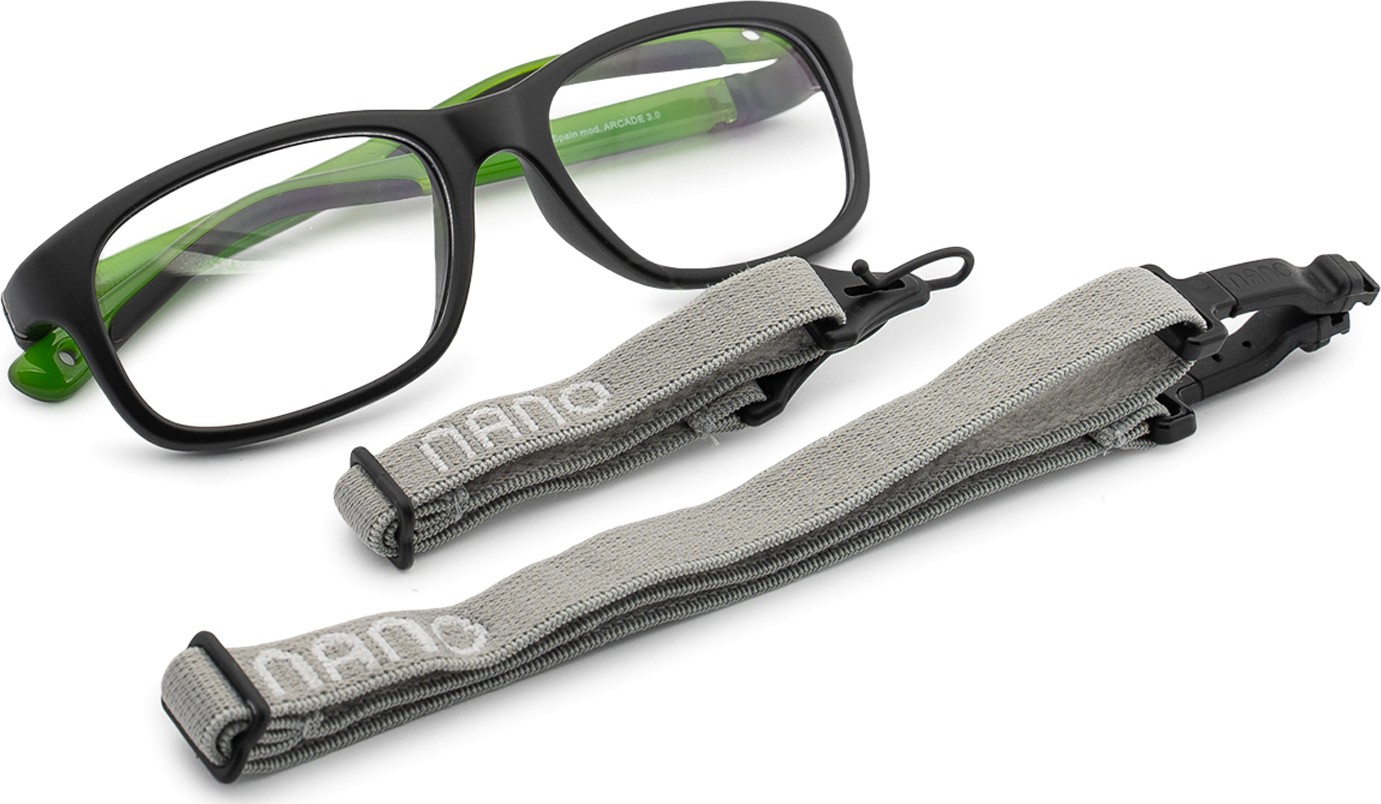 Arcade 3.0 -silmälaseissa on kaksi säädettävää tekstiilihihnaa, jotka vähentävät silmälasien putoamisriskiä ja varmistavat, että silmälasit istuvat paremmin päässä erilaisten lasten aktiviteettien aikana.