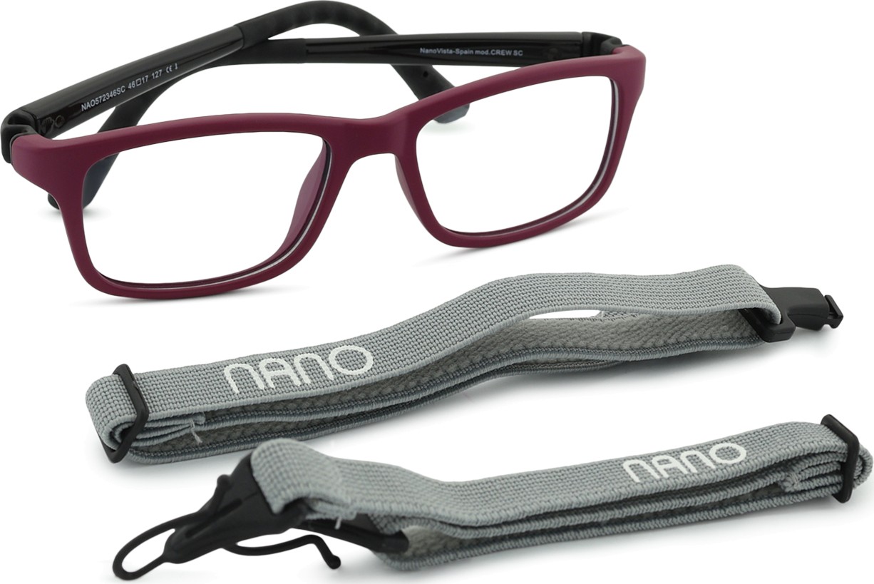 Crew-silmälaseissa on kaksi säädettävää tekstiilihihnaa, jotka vähentävät silmälasien katoamisriskiä ja antavat paremman pidon päässä erilaisten lasten aktiviteettien aikana.