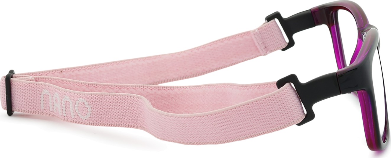 Fangame-mallissa on kaksi säädettävää tekstiilihihnaa, jotka vähentävät silmälasien katoamisriskiä ja parantavat niiden kiinnitystä päähän erilaisten lasten aktiviteettien aikana.