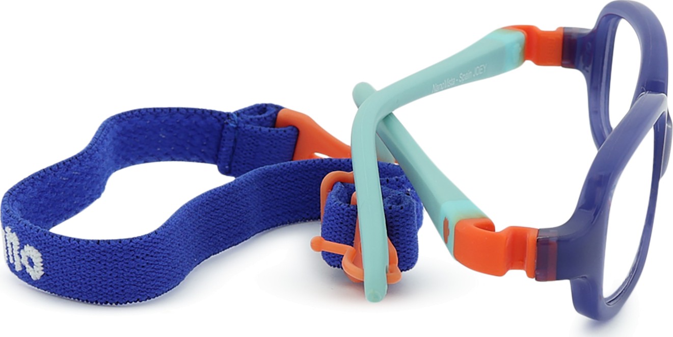 Joey-mallissa on kaksi säädettävää tekstiilihihnaa, jotka vähentävät silmälasien katoamisriskiä ja parantavat niiden kiinnitystä päähän erilaisten lasten aktiviteettien aikana.