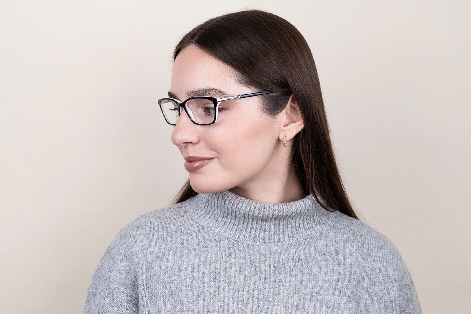 Kehyksen musta väri sopii täydellisesti viileään ihonsävyyn ja vaaleanvaaleisiin, vaaleanruskeisiin tai mustiin hiuksiin.