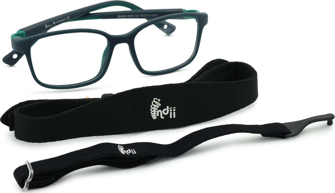 Indii Kids IN har två justerbara textilremmar som minskar risken för att glasögonen tappas bort samt ger ett bättre fäste på huvudet under olika barnaktiviteter.