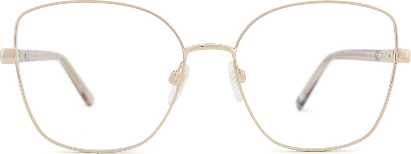 - Kehyksen kultainen väri sopii täydellisesti lämpimään ihonsävyyn ja tummanruskeisiin hiuksiin.