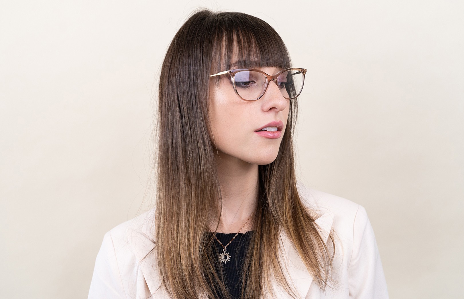 - Kehyksen ruskea väri sopii täydellisesti lämpimään ihonsävyyn ja vaaleanruskeisiin, mustiin tai tummanvaaleisiin hiuksiin.