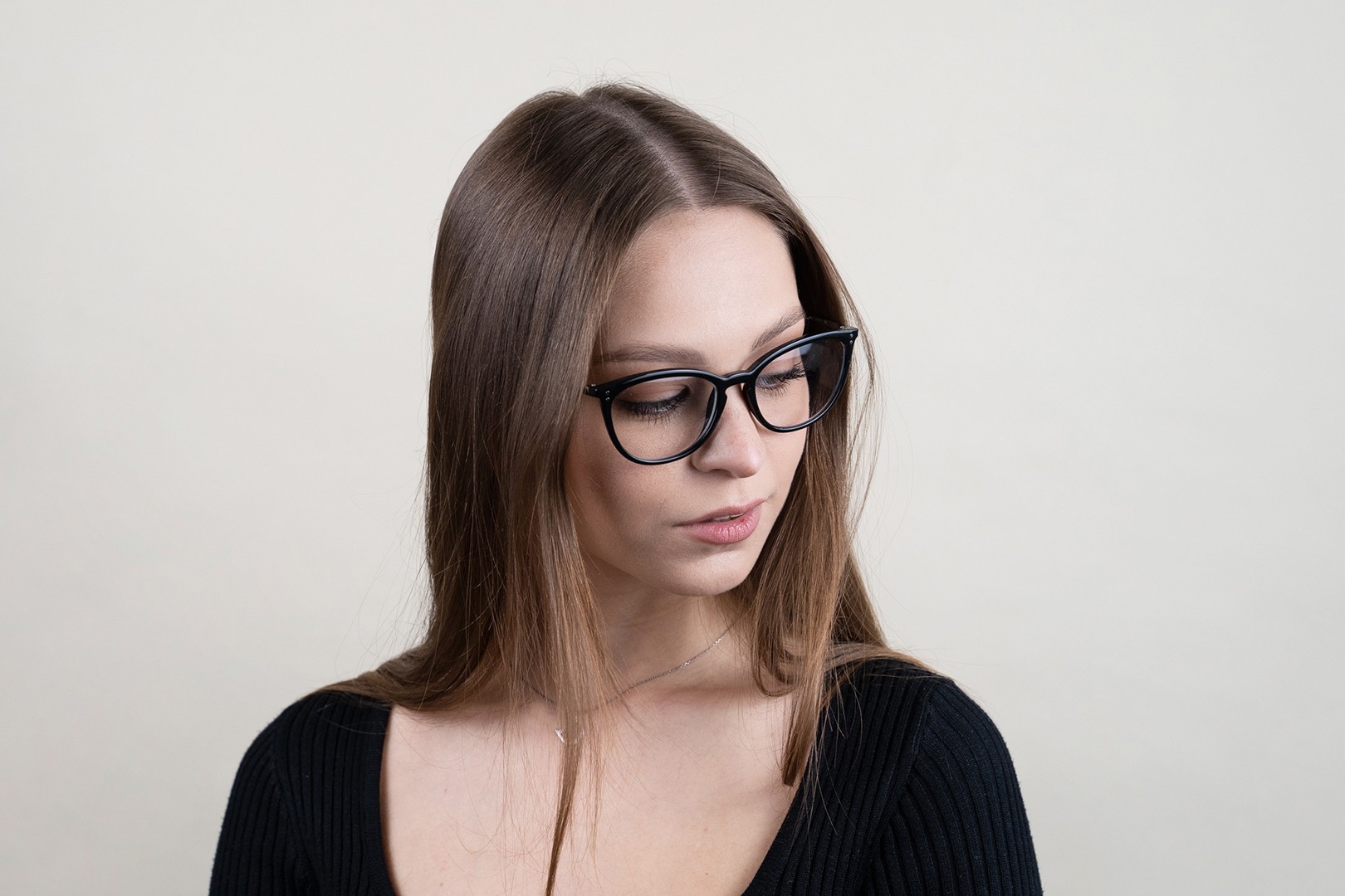 - Kehyksen musta väri sopii täydellisesti viileään ihonsävyyn ja vaaleanvaaleisiin, vaaleanruskeisiin tai mustiin hiuksiin.